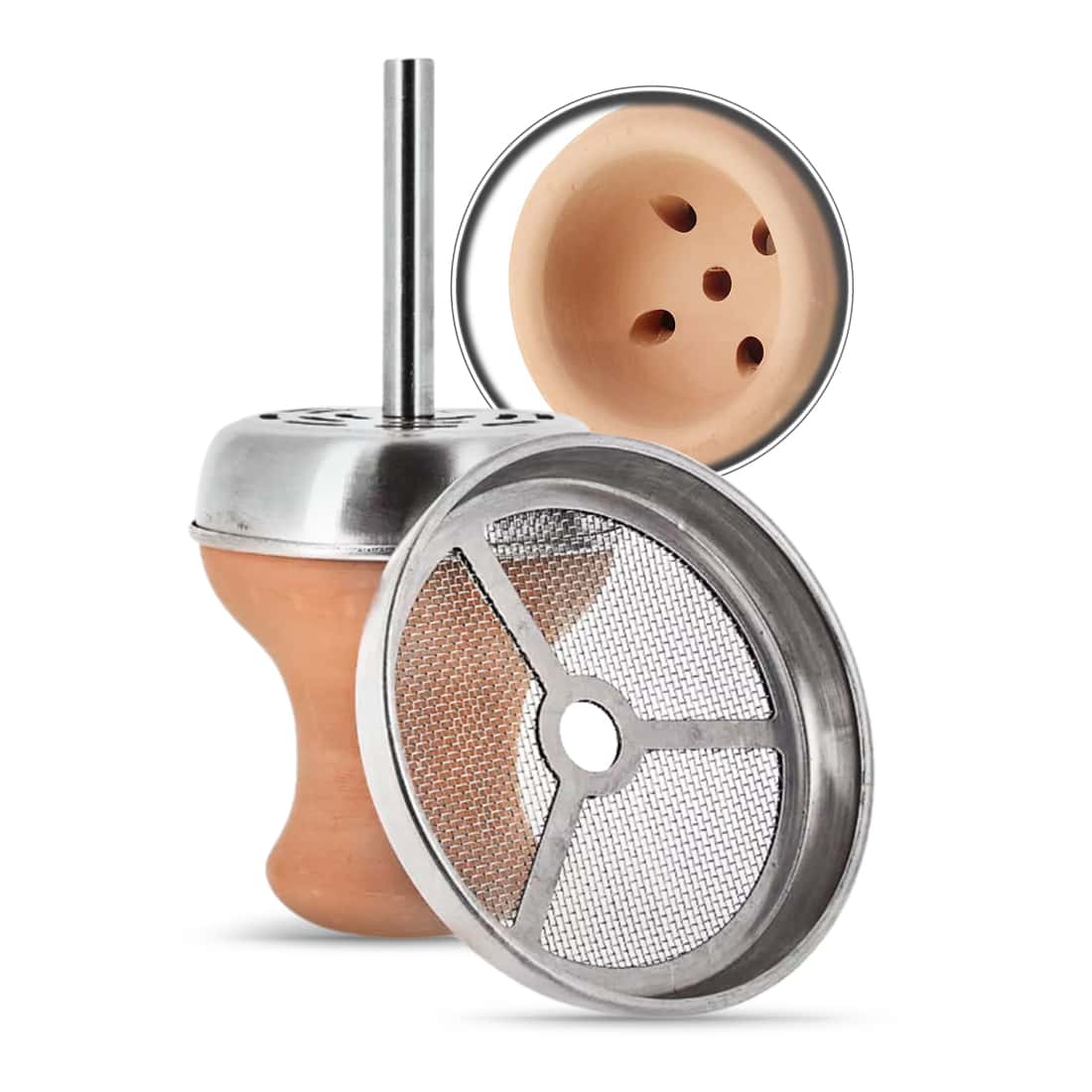 Inutile de se mettre au vert pour profiter d'un moment détente avec une chicha entre amis. Le Pack Starter Chicha Altair Khephren Deluxe Vert vous apportera tout le confort nécessaire que cela soit en matière de goût, de temps de préparation ou de vapeur. Conçu pour vous apporter le meilleur du narguilé, vous allez bénéficier ici d'une grande variété d'accessoires et d'équipements indispensables pour un fumeur de chicha. Vous profiterez donc d'un narguilé moderne et de qualité, d'un tuyau silicone avec manche métal, d'une pince à charbon, d'un kilo de charbon à chicha, de deux pots de pierres à vapeur, de feuilles en aluminium, d'un foyer silicone, d'un foyer en terre cuite, de deux systèmes de chauffe-charbons aux particularités différentes et d'un briquet à flamme torche. Nous vous recommandons d'utiliser le foyer terre cuite avec le système de chauffe-charbon type cheminée et le foyer en silicone avec le système de chauffe-charbon Altair.