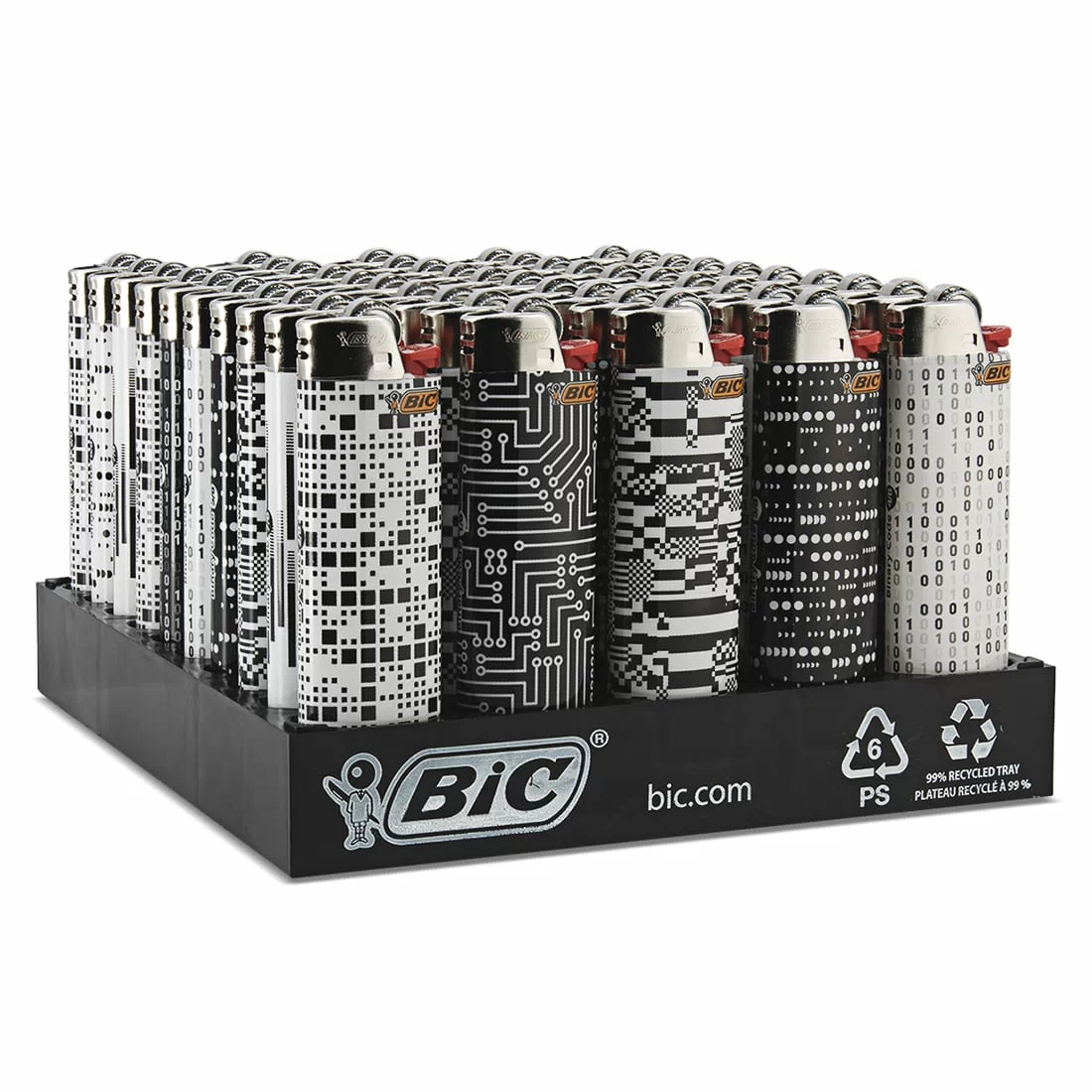 Livrés dans une barquette de présentation Bic contenant 50 briquets assortis, idéale pour la distribution ou le rangement.