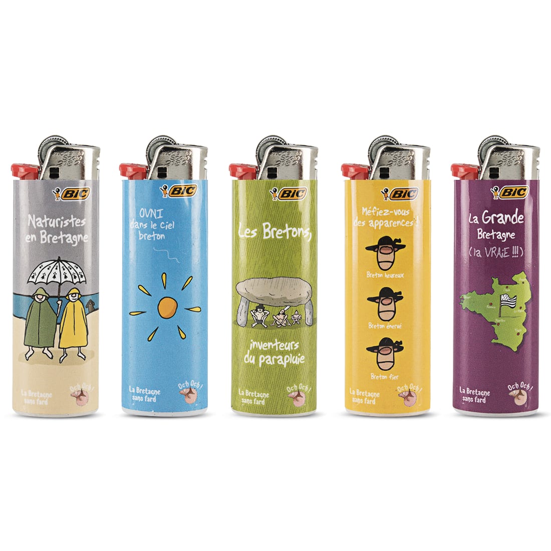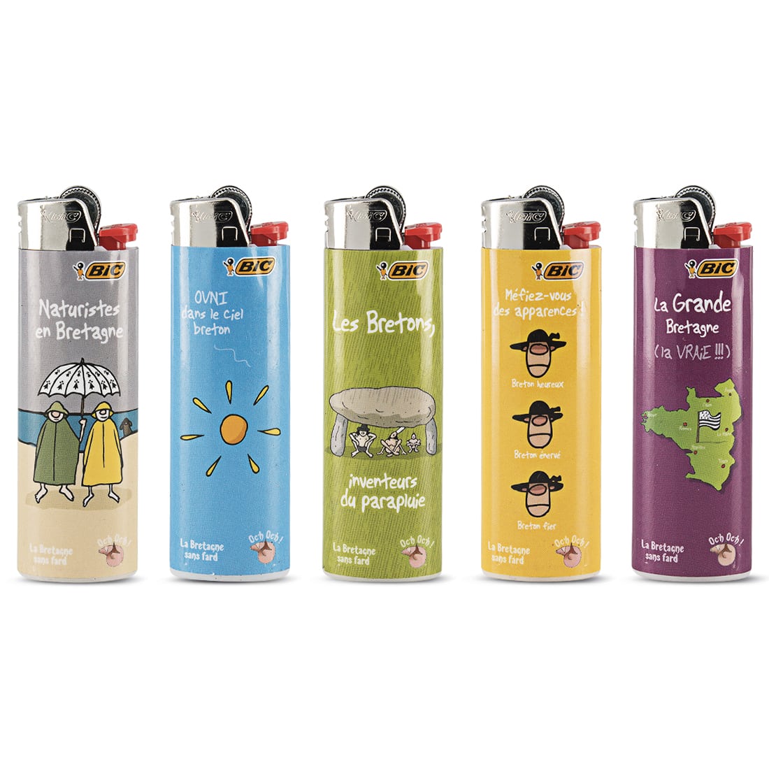 50 briquets Bic Maxi à pierre réunis dans une barquette de présentation, chacun décoré d’un motif humoristique inspiré de la Bretagne. Conçus pour un usage quotidien, ces briquets affichent une fiabilité reconnue grâce à leur allumage à pierre et leur flamme souple, réglable selon les besoins. Ce lot généreux est idéal pour les amateurs de produits pratiques au design original, ou pour les professionnels recherchant un assortiment varié et attractif. Les illustrations colorées mettent en avant l’esprit breton avec une touche d’humour, pour un accessoire à la fois fonctionnel et plein de caractère. Non rechargeables et conformes aux normes ISO, ces briquets allient sécurité, simplicité et style pour tous les usages du quotidien.