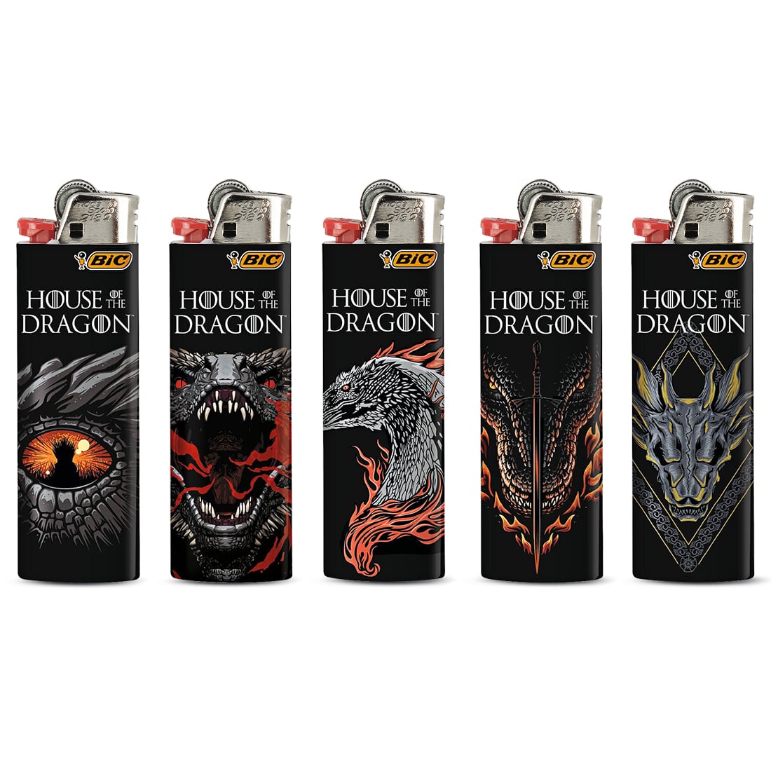 Description complète pour 5 Briquets Bic Maxi à pierre House of The Dragon