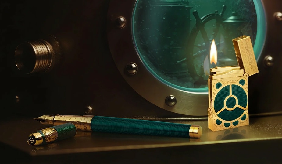 Depuis toujours, la maison S.T. Dupont travaille à l’intersection du luxe, de l’artisanat et de l’imaginaire. En cette rentrée 2025, elle met les voiles vers les profondeurs avec une collection hommage inspirée du roman mythique de Jules Verne, Vingt Mille Lieues sous les mers, dévoilant une édition limitée qui fait dialoguer le geste du feu, l’écriture et l’univers marin.
