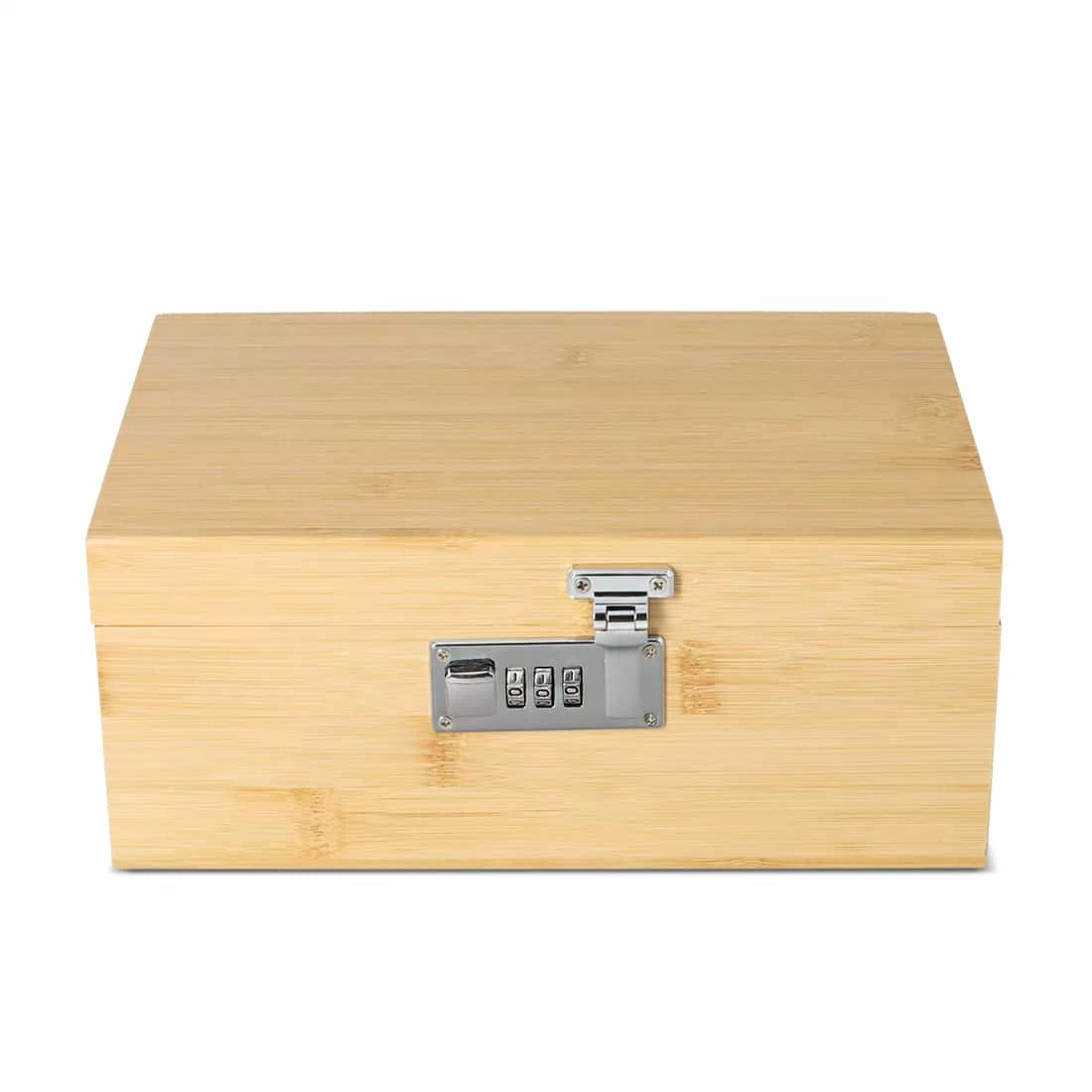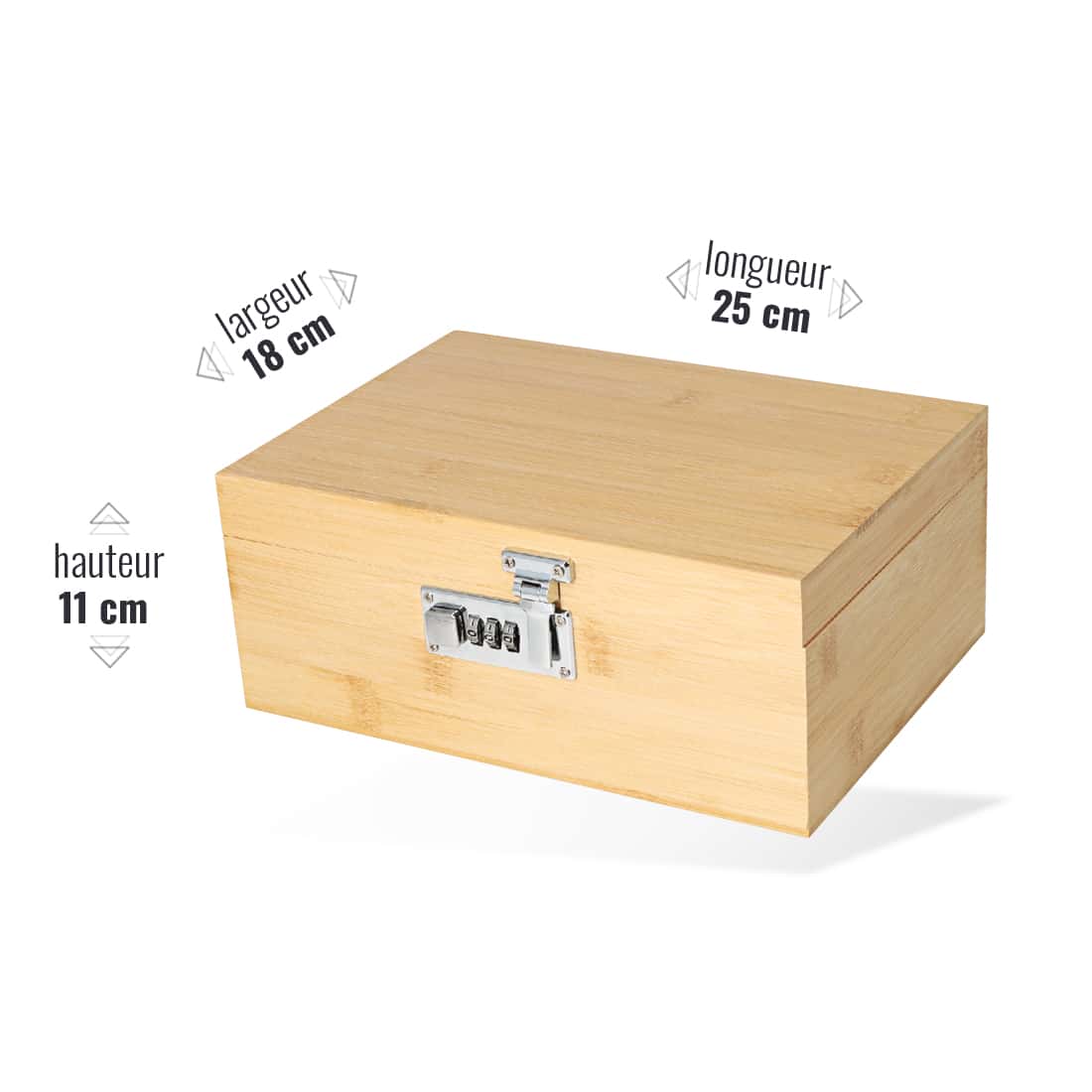 Boîte de rangement avec code, conçue en bambou naturel pour une organisation élégante et sécurisée de vos accessoires. Dotée d’un ...