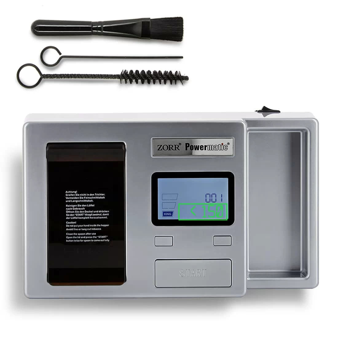 Cette tubeuse électrique est le 3ème modèle de la Powermatic. Elle permet, outre le fait de ne pas mettre du tabac partout sur la table, de confectionner des cigarettes semblables à celles que l’on achète chez les buralistes et ce, à moindre coût ! Cette machine à tuber est très simple d’utilisation. Grâce à ses 3 boutons situés sur le dessus vous pourrez fabriquer vos cigarettes regular rapidement et même des cigarettes 100's ! Capable de produire une vingtaine de cigarettes en moins de 5 min, elle vous facilitera la vie et vous fera gagner du temps. Son écran LCD vous permettra de choisir le type de cigarette que vous souhaitez tuber (regular ou 100's). Enfin, la machine a tuber electrique Powermatic 3 vous sera livrée avec sa notice d’utilisation (en anglais) ainsi que 2 brosses de nettoyage et 1 tige de curage.