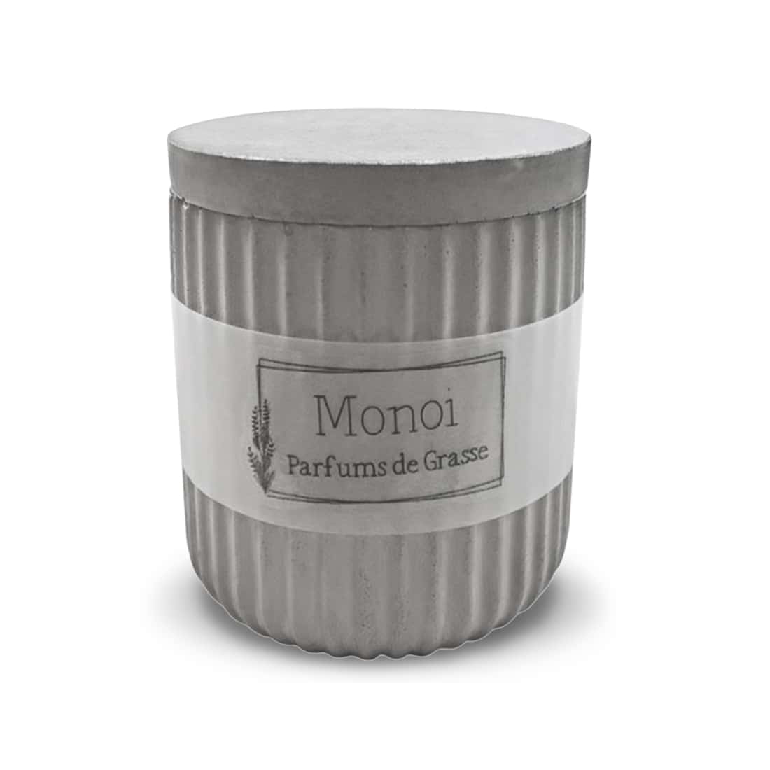 Bougie anti tabac Charlie parfum Monoï, parfaite pour créer une ambiance agréable à la maison ou dans un espace de vie. Cette bougie artisanale, fabriquée à la main à Grasse, est composée de cire 100% naturelle au soja, garantissant une combustion propre. Son parfum Monoï, issu des célèbres parfums de Grasse, diffuse une senteur exotique et délicate qui apporte une touche raffinée à votre intérieur. Les fleurs séchées incorporées dans la cire ajoutent une note décorative originale. Son pot cannelé en béton gris, au design moderne, s’intègre harmonieusement à tout type de décoration. Idéale pour ceux qui souhaitent neutraliser les odeurs indésirables, cette bougie s’inscrit dans une démarche artisanale et locale.