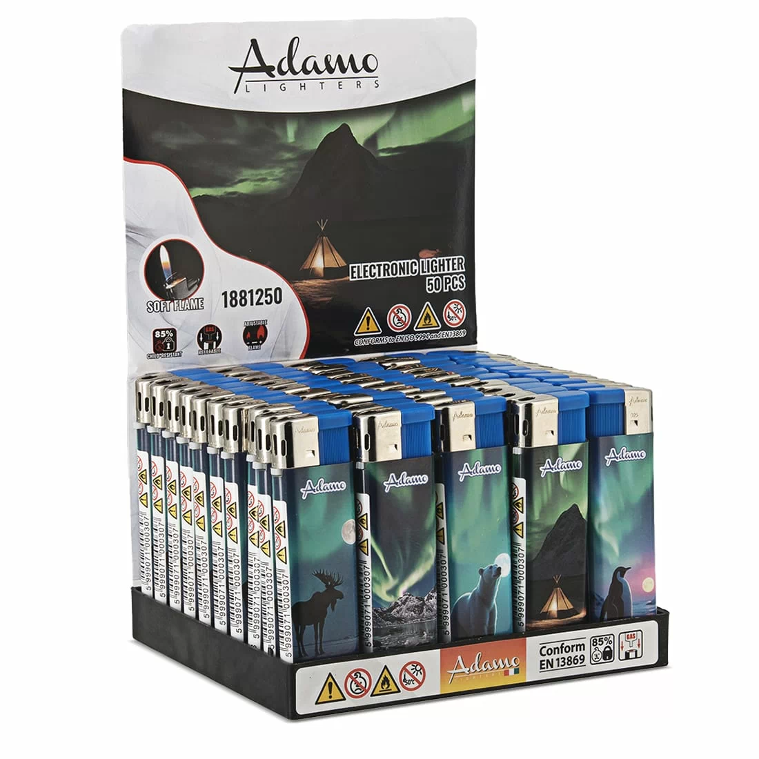 Briquet électronique jetable décoré de superbes illustrations inspirées des aurores boréales, proposé ici en lot économique de 50 exemplaires. Chaque briquet arbore des motifs variés : paysages polaires, animaux comme l’ours ou le pingouin, ou encore décors nocturnes sous ciel illuminé. Ce format généreux répond parfaitement aux besoins d’évènements, d’associations ou de boutiques recherchant un accessoire pratique et esthétique. Léger et compact, ce briquet s’utilise facilement au quotidien. Non rechargeable, il respecte les normes de sécurité en vigueur et offre une flamme souple et fiable. Idéal pour renouveler régulièrement ses accessoires ou partager autour de soi, tout en profitant d’un design original.