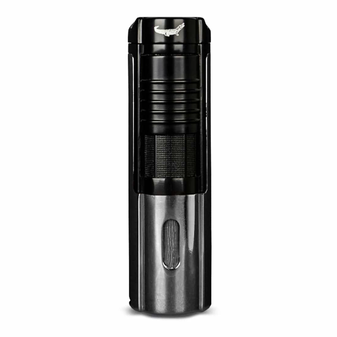Briquet tempête à 3 flammes, ce modèle finition Gun est conçu pour offrir puissance et précision lors de l’allumage. Son design robuste en noir et gris assure une bonne prise en main, tandis que l’allumage piézoélectrique facilite l’utilisation en toutes circonstances. Les trois flammes, dont l’intensité est réglable, garantissent une chauffe rapide et homogène. Ce briquet intègre également un emporte-pièce puncher, idéal pour les amateurs de cigares souhaitant disposer d’un accessoire tout-en-un. Le capot protecteur préserve les brûleurs et le puncher, augmentant la durabilité du produit. Pratique, il se glisse aisément dans une poche ou un étui grâce à son format compact et son poids de 80 grammes et son système de repose cigare.