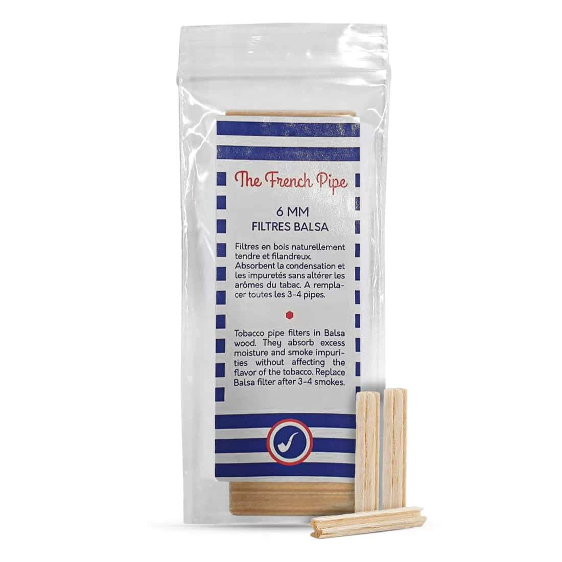 Sachet de 20 filtres balsa en 6 mm. Ces filtres conviennent aussi bien aux pipes Chacom qu'aux autres marques de pipes utilisant des filtres 6 mm. Le filtre balsa est le filtre pipe le plus absorbant ; il est également naturel, parfait pour fumer frais et propre ! Grâce à ses nombreuses fibres poreuses, le bois balsa possède l'exceptionnelle capacité d'absorber de façon naturelle l'humidité ainsi que les impuretés de la fumée.