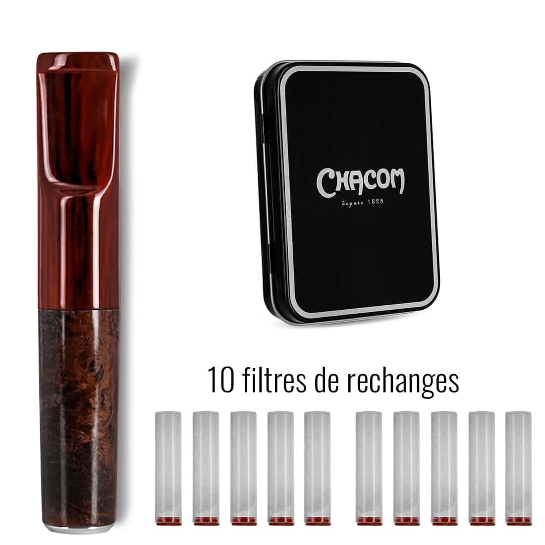 Fume cigarette Chacom en bruyère et acrylique compatible avec toutes les cigarettes King Size (taille standard / 0.8 cm de diamètre). En plus d'être un fume ...