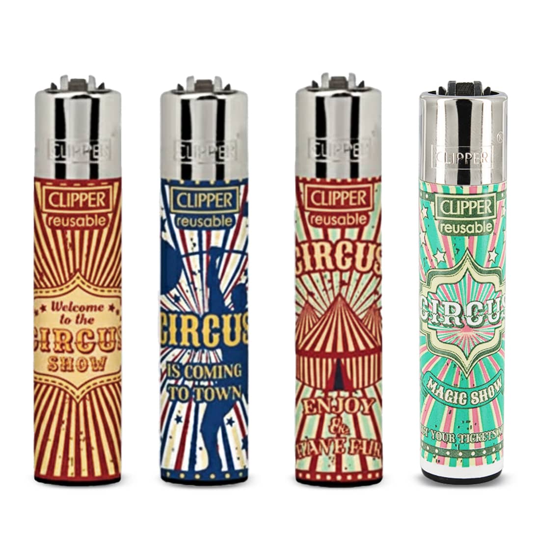 Lot de 48 briquets Clipper Circus Life modèle-2, parfaits pour ceux qui recherchent des accessoires fiables, colorés et pratiques en grande quantité. Chaque briquet...