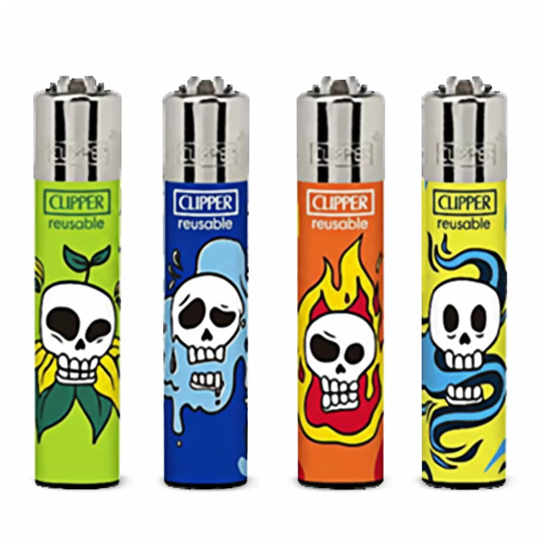 Briquet Clipper Hilarious modèle-1 x 4 est un lot de briquets rechargeables, réputés pour leur robustesse et leur design original. Chaque briquet de ce pack arbore un motif "skull" humoristique et coloré, parfait pour ceux qui aiment personnaliser leurs accessoires du quotidien. Pratiques et économiques, ces briquets sont conçus pour être réutilisés grâce à leur système de recharge de gaz et leur pierre remplaçable. Leur format cylindrique assure une bonne prise en main et une utilisation confortable au quotidien.