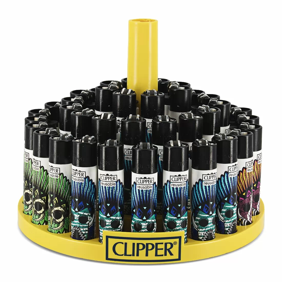 Lot de 48 briquets Clipper Native Totem modèle-2, conçus pour répondre aussi bien aux besoins des professionnels qu’aux amateurs de produits fiables. Chaque briquet arbore un design inspiré des motifs totem, avec des couleurs vives et variées. Le corps en nylon, à la fois léger et très résistant, assure une excellente prise en main et une longue durée de vie. Les briquets disposent d’un allumage à pierre renouvelable et d’une molette amovible, servant également de tasseur. Rechargeables au gaz, ils offrent une contenance supérieure à celle des modèles jetables standards. La flamme, sécurisée et ajustable, garantit une utilisation conforme aux exigences européennes (ISO 9994). Ce lot de 48 est idéal pour boutiques spécialisées, événements ou lieux nécessitant un stock conséquent d’accessoires de qualité.