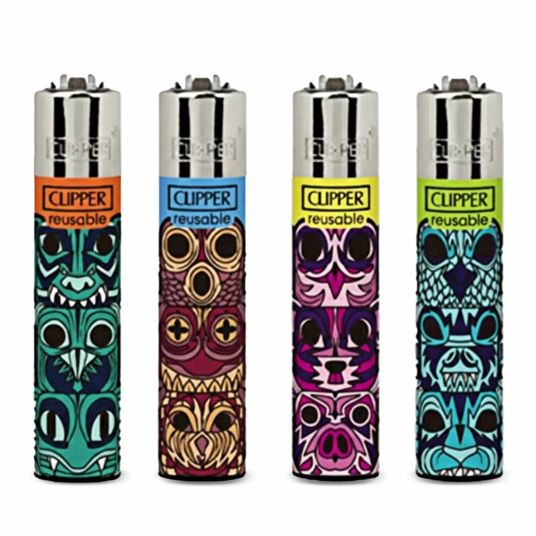 Bénéficiez d’un lot de 4 briquets Clipper Native Totem Modèle 3, reconnus pour leur robustesse et leur design coloré inspiré de l’art totem. Chaque briquet arbore un motif unique et offre une prise en main légère et agréable grâce à son corps en nylon résistant et recyclable. Pratique au quotidien, ce briquet est équipé d’un système d’allumage à pierre renouvelable et d’une partie amovible faisant office de tasseur. Sa capacité de gaz, doublée par rapport à un briquet jetable standard, vous assure une longue durée d’utilisation. Rechargeable avec du gaz et conforme à la norme européenne de sécurité pour enfants, ce modèle garantit fiabilité et utilisation en toute tranquillité. La flamme souple et sécurisée s’adapte à vos besoins, qu’elle soit droite ou inclinée. Ce lot est idéal pour ceux qui recherchent un accessoire durable, original et respectueux de l’environnement. Les briquets disposent d’un allumage à pierre renouvelable et d’une molette amovible, servant également de tasseur. Rechargeables au gaz, ils offrent une contenance supérieure à celle des modèles jetables standards. La flamme, sécurisée et ajustable, garantit une utilisation conforme aux exigences européennes (ISO 9994). Ce lot de 48 est idéal pour boutiques spécialisées, événements ou lieux nécessitant un stock conséquent d’accessoires de qualité