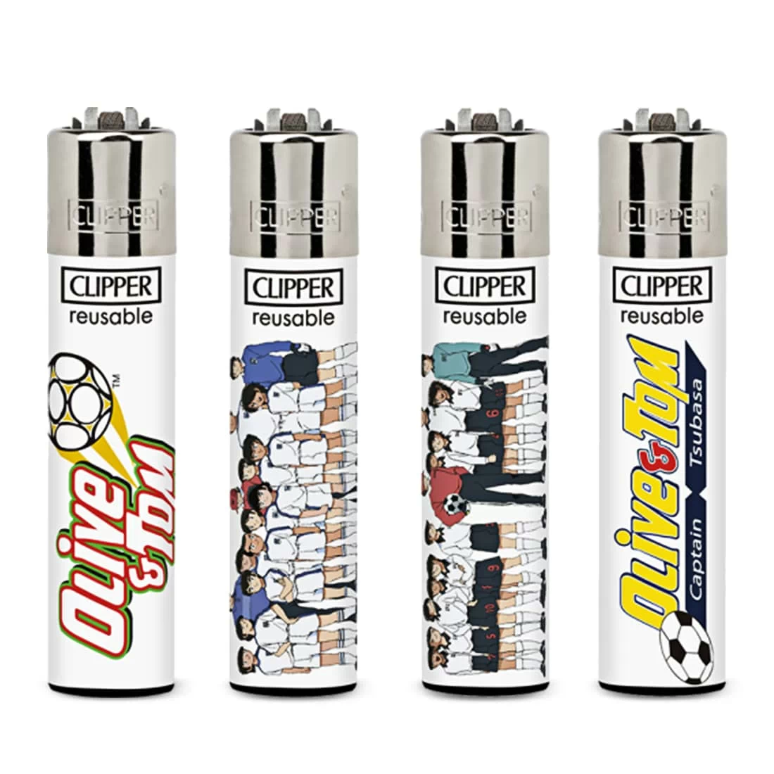 Le set de 4 briquets Clipper Olive et Tom modèle-3 propose une nouvelle sélection d’illustrations originales inspirées du manga culte Olive et Tom (Captain Tsubasa). Chaque briquet présente un design inédit, mettant en avant des personnages ou scènes emblématiques qui raviront les collectionneurs et amateurs de pop culture. Grâce à leur conception robuste, ces briquets sont rechargeables et équipés d’une pierre remplaçable, garantissant une longue durée d’utilisation. Leur format classique Clipper offre une prise en main confortable et un usage pratique au quotidien. Avec leurs motifs colorés et leur finition soignée, ils deviennent des accessoires incontournables pour personnaliser sa collection ou offrir un cadeau unique.