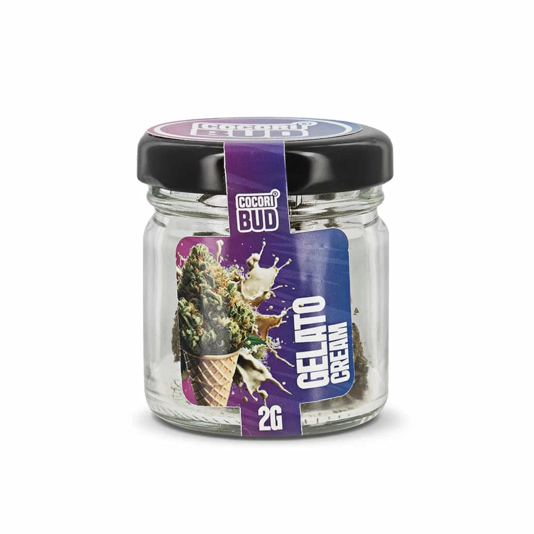 Fleur de CBD Gelato Cream signée Cocoribud, conditionnée en pot de 2g. Présentée dans un petit bocal en verre transparent doté d’un couvercle à vis noir, cette sélection met en avant une présentation raffinée et pratique. La variété Gelato Cream se distingue par son aspect dense et ses arômes naturels, appréciés pour leur authenticité. Le format 2g est idéal pour découvrir la gamme ou pour une utilisation ponctuelle, tout en assurant une bonne conservation grâce au pot hermétique. Ce produit est réservé exclusivement aux usages autorisés par la législation française et n’est pas destiné à la combustion.