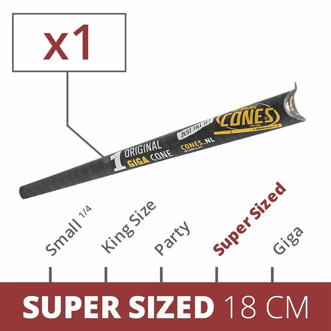 Cones Super Sized déjà roulé qui attend juste d'être rempli ! Confectionné à partir d'un papier à rouler fin de qualité et un filtre en carton roulé en W, vous n'aurez plus qu'à tasser votre tabac avant de l'allumer.