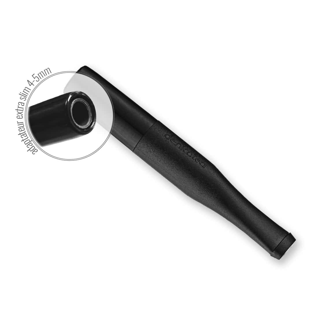 Coffret Fume-cigarettes Dénicotéa Ibiza Extra Slim Noir, l’accessoire idéal pour accompagner les amateurs de cigarettes extra fines. Ce modèle séduit par sa sobriété et sa finition noire mate, pensée pour une prise en main confortable. Le fume-cigarettes se distingue par sa conception dévissable, facilitant l’insertion ou le remplacement du filtre, tout en garantissant un entretien simple et rapide. Ce modèle ne dispose pas d’éjecteur, offrant ainsi une structure légère et discrète. Livré dans un coffret élégant avec filtres de rechange et adaptateur 4 / 5 mm, il s’adapte à la plupart des cigarettes extra slim. Son format compact permet de le glisser facilement dans une poche ou un étui, pour un usage quotidien tout en sobriété.