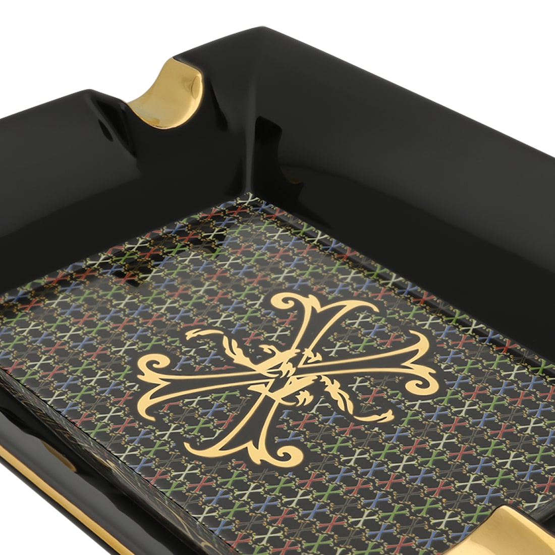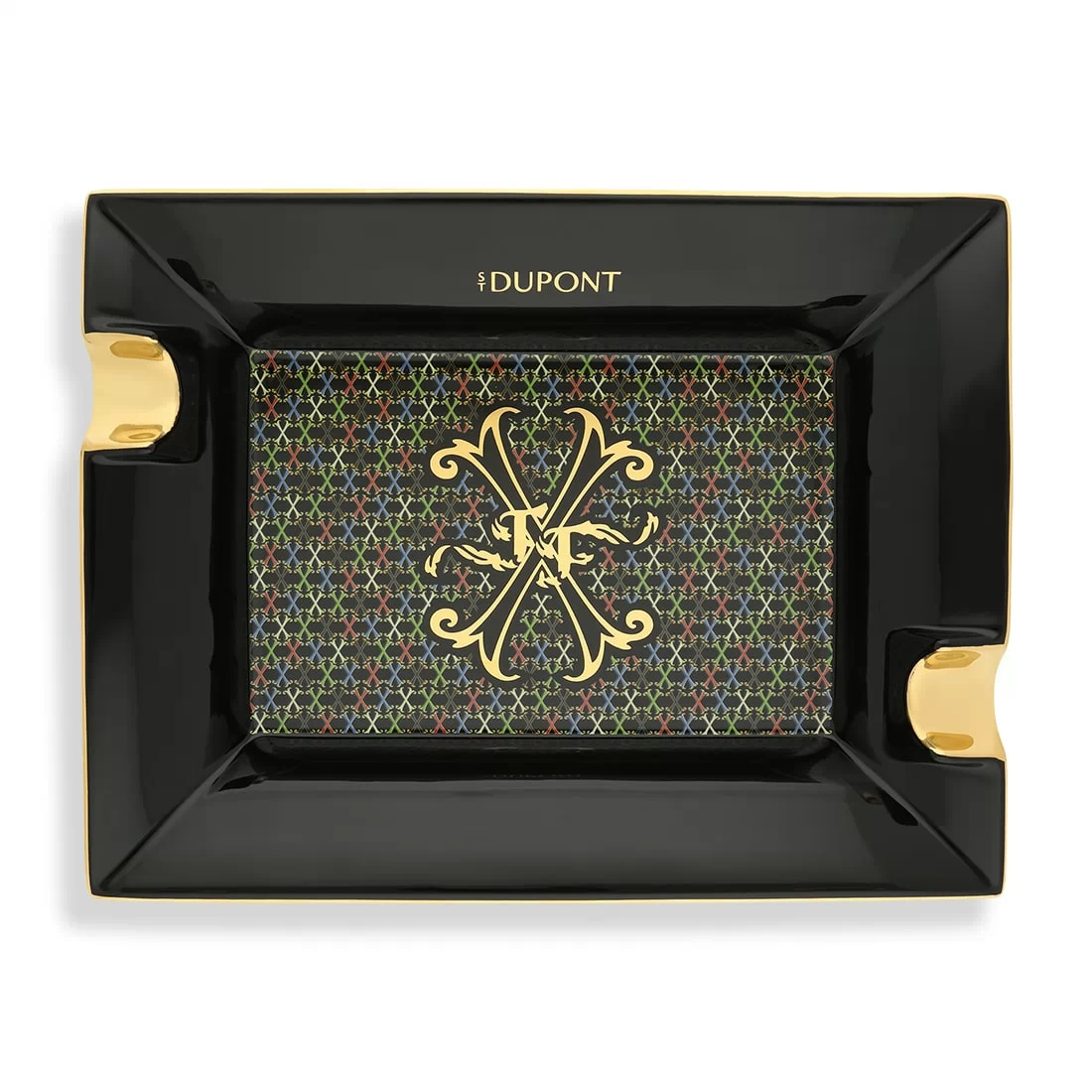 Célébrez l’art de la table raffinée avec ce cendrier cigare S.T. Dupont Fuente Noir, issu de la prestigieuse collection Arturo Fuente. Conçu en porcelaine, il se distingue par son design élégant, mêlant noir profond, touches dorées et motifs multicolores sophistiqués. Ce cendrier rectangulaire, doté de deux repose-cigares dorés, offre une grande stabilité grâce à son poids de 610 grammes. Son décor central doré, emblématique, apporte une touche de luxe à tout espace de dégustation. Idéal pour sublimer vos moments de convivialité, il s’intègre parfaitement à une décoration classique ou contemporaine. Un accessoire incontournable pour les amateurs d’objets d’exception, alliant fonctionnalité et esthétique.