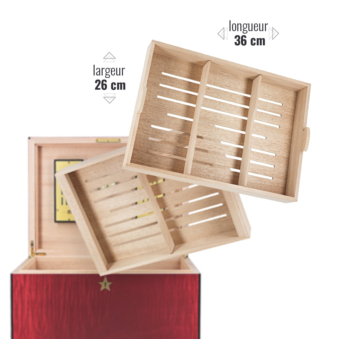 • plateaux intérieurs : 36 x 26 x 5 cm