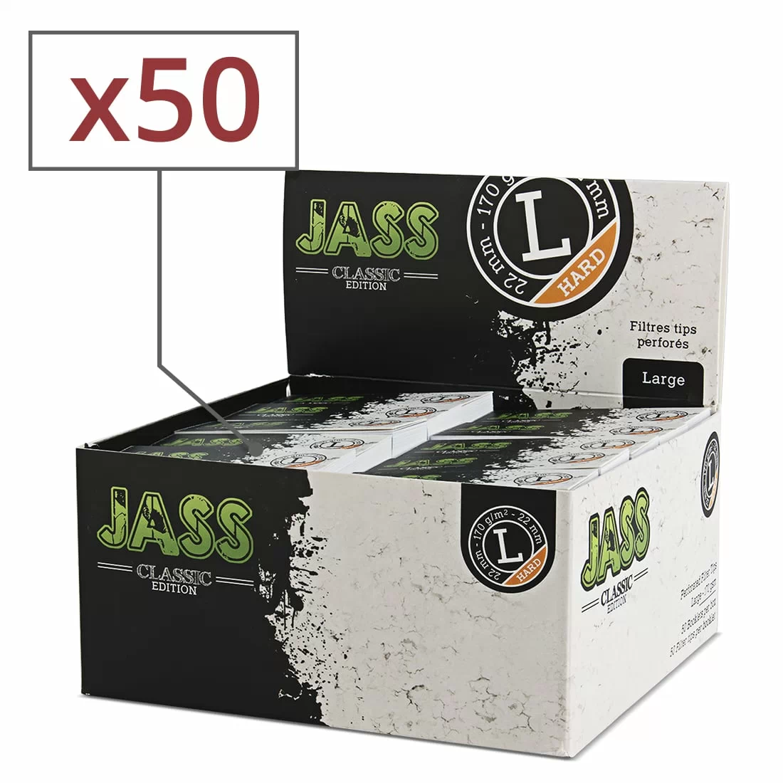 Un filtre carton au design urbain et plus large que le filtre carton normal. Perforé, il vous aide à rouler avec le W qui évite aux petits bouts de tabac d'être aspirés.