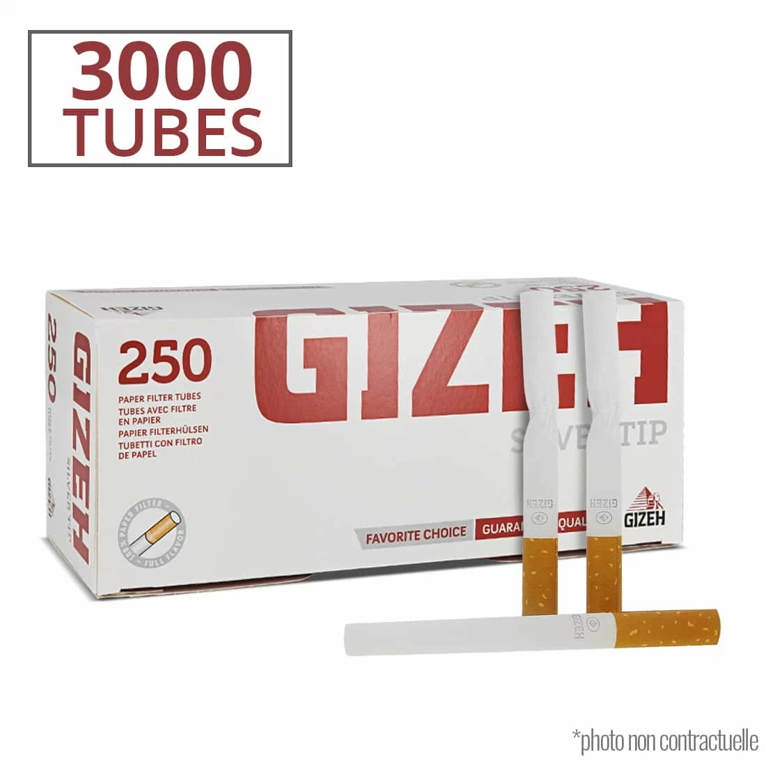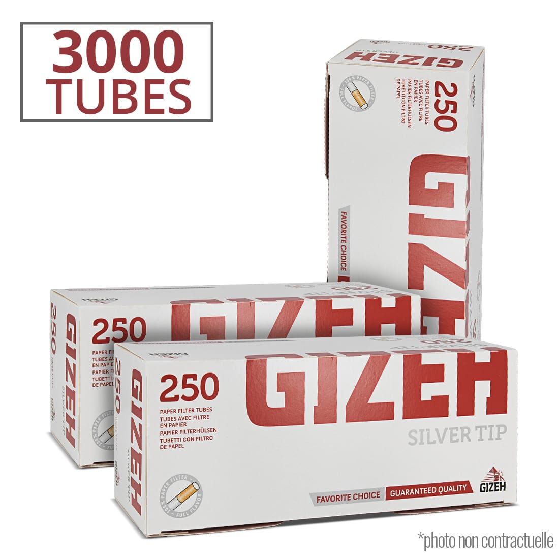 Composée de tubes en papier avec un filtre de taille standard, ce pack de 3000 tubes Gizeh Silver Tip vous fera faire de grandes économies. A remplir du tabac de votre choix, que nous vous conseillons de prendre en pot (spécial tubes), ces tubes à cigarette Gizeh seront à tuber à l'aide d'une machine à tuber électrique ou manuelle, qui sont en vente sur notre site.