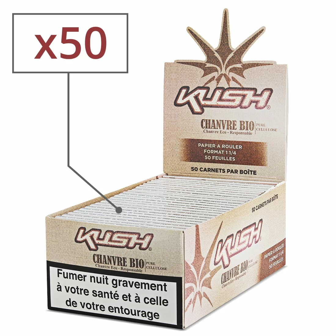 Papier à rouler Kush 1 1/4 Chanvre Bio Pure Cellulose x 50