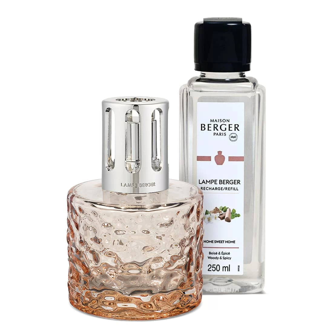 Coffret Lampe Berger Mirage Nude, une pièce raffinée pour sublimer l’intérieur et apporter une touche décorative. Ce coffret réunit une lampe catalytique à la silhouette ronde et texturée, dans une teinte nude élégante, ainsi qu’un flacon de recharge 250 ml "Home Sweet Home". Conçue en verre travaillé et équipée d’une monture argentée, cette lampe combine design moderne et tradition française. Idéale pour assainir l’air ambiant et diffuser délicatement un parfum d'intérieur, elle s’intègre à tous les styles de décoration. Le coffret est prêt à offrir, parfait pour découvrir ou faire découvrir l’univers Maison Berger.