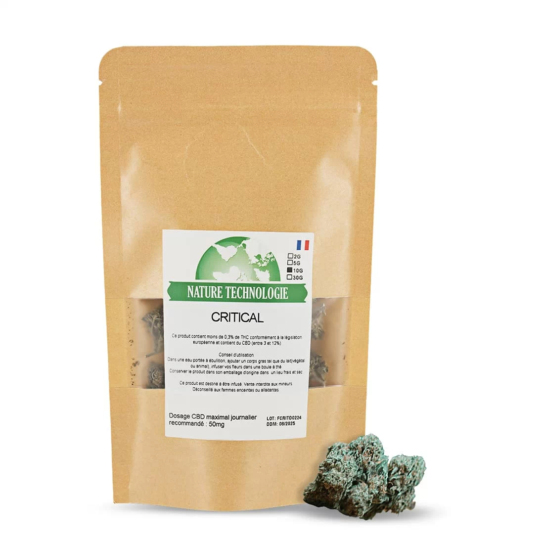 fleur de CBD Nature Technologie Critical se distingue par ses arômes puissants et ses propriétés relaxantes. Cultivée en intérieur, elle offre une qualité irréprochable grâce à un contrôle rigoureux de son environnement de croissance. Cette variété propose des senteurs de citron et de pin, accompagnées de nuances terreuses et épicées, pour une expérience sensorielle intense. Avec une teneur en CBD équilibrée, la Critical est idéale pour les consommateurs recherchant un produit naturel, efficace et respectueux des normes légales. Profitez de cette fleur de CBD pour une consommation sûre et agréable.
