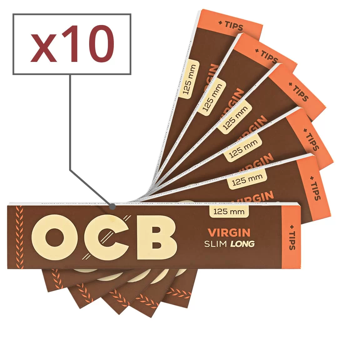 Lot de 10 carnets OCB 2-en-1 comprenant chacun 32 feuilles slim longues (15 % plus longues que les feuilles slim classiques) et 32 filtres en carton. Avec ses 125 mm de longueur, la feuille a rouler OCB Slim Virgin Long permet de rouler des cigarettes plus grandes que la normale. Le tout avec une qualité de premier choix, en gomme naturelle d'acacia ultra résistante, sans produits chimiques. Les tips sont quant à eux pré-découpés, permettant un roulage simple et rapide.