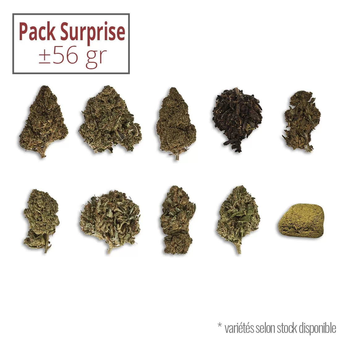 Découvrez le Pack Surprise CBD comprenant au moins 56 g, qui rassemble une sélection aléatoire de variétés de fleurs de CBD et de ...