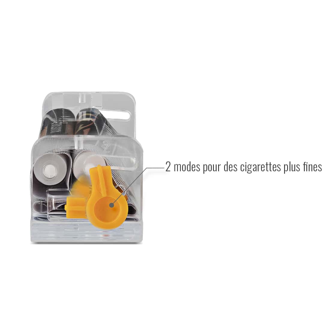 La rouleuse Zen ajustable 70 mm est un accessoire compact et pratique, conçu pour rouler facilement des cigarettes de format régular (70 mm). Dotée d’un mécanisme ajustable, elle permet de sélectionner deux modes pour obtenir des cigarettes plus fines selon vos préférences. Fabriquée en plastique transparent et robuste, elle se distingue par sa légèreté (27 grammes) et sa prise en main ergonomique. L’accessoire intègre un système à molette jaune pour régler la largeur du roulage, idéal pour une préparation personnalisée. Son style sobre et fonctionnel en fait un choix fiable pour tous ceux qui recherchent efficacité et simplicité au quotidien. Cette rouleuse est utilisable avec des filtres 6 ou 8 mm.