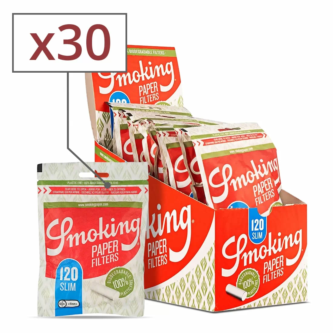 Filtres Smoking Slim Biodégradable x 30 sachets