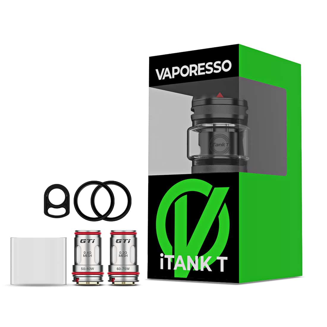 La cartouche Vaporesso iTank T Dual Version 6ml est livrée dans une boîte d’origine, accompagnée de deux résistances GTi (0.2Ω et 0.4Ω), d’un pyrex de rechange et d’accessoires de joints pour un entretien optimal.