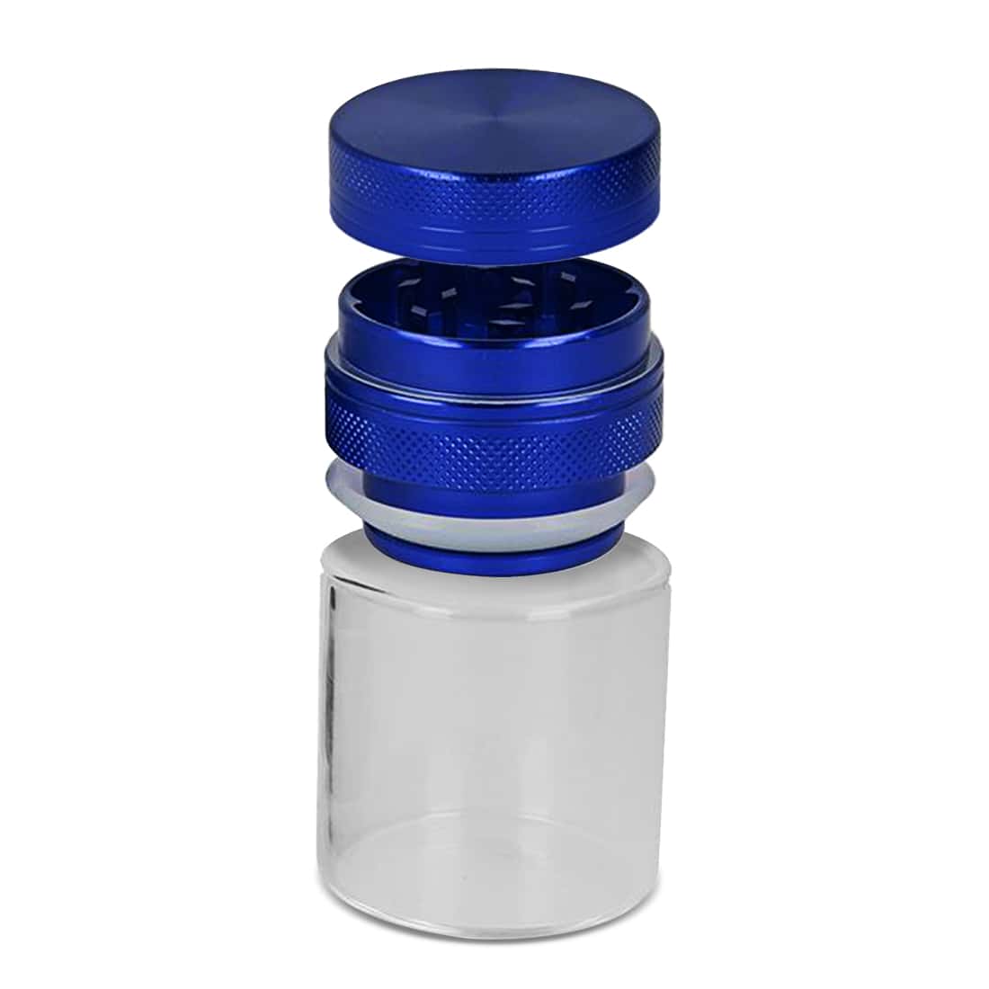 Grinder Zorr en métal avec pot en verre, conçu pour allier efficacité et praticité. Ce combo ingénieux propose un grinder métallique robuste, vissé sur un pot en verre transparent, idéal pour conserver vos herbes aromatiques en préservant leur fraîcheur. Le système de fermeture intègre un joint hermétique qui garantit une conservation optimale. Le design compact (hauteur 6 cm, diamètre 4 cm) permet un transport facile et un rangement discret. L'alliance du métal et du verre offre un entretien simplifié, tout en assurant une grande durabilité. Disponible en bleu ou noir selon vos préférences, cet accessoire se distingue par sa finition soignée et son ergonomie, pensées pour une prise en main agréable et un usage quotidien fiable.