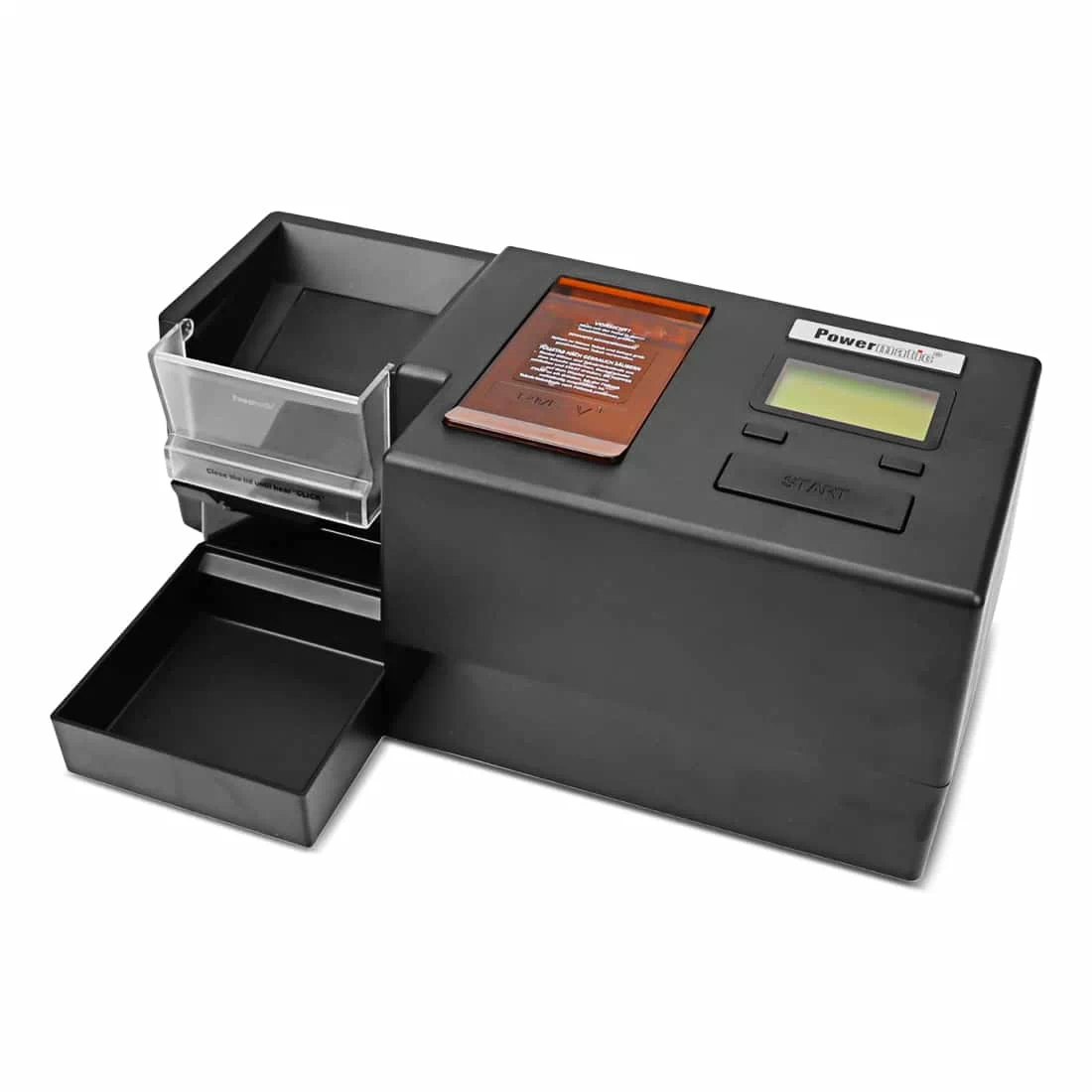 Powermatic 5+ Noire s’adresse aux amateurs d’accessoires performants pour la confection de tubes. Son design moderne noir mat intègre un écran digital, un bac de récupération, un broyeur intégré et un compartiment transparent pour le rangement des tubes. Facile à utiliser grâce à son bouton « START », elle permet une confection rapide et régulière des tubes, adaptés à différents types de tabac à rouler. Son poids de 4 kg en fait un appareil stable et robuste, idéal sur un plan de travail. Livrée avec des accessoires d’entretien (brosse, tige de nettoyage) et un câble d’alimentation, elle se distingue par son efficacité et sa praticité pour un usage domestique régulier.